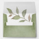 Minimalist watercolor botanical design features delicate autumn leaves, just starting to turn, lining the envelope... with matching green watercolor parchment on the outside of the envelope. Simple elegance.