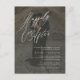 This design is perfect for the minimalists at heart looking for a black and white yet elegant wedding invitation postcard! Featuring "Happily Ever After" in a calligraphic script font in white with your wedding details in a simple typography combining uppercase serif and lowercase italics. A photo template appears behind a semi-transparent black overlay so your wedding information remains readable! This product is part of our "Happily Ever After" wedding suite.
