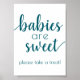 Modern "Babies are sweet: please take a treat" shower, party, or reception table signage featuring a fun, casual hand-lettered script. The classic design includes a modern handlettered quote typography overlay. The lovely font with a customizable background color makes it easy to fit any theme. For other colors or matching products, please visit the JustFharryn Zazzle store, or contact the designer, c/o fharryn@yahoo.com All rights reserved. #zazzlemade