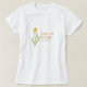 Announce your pregnancy with a simple symbol of a yellow wildflower with a bud on the way to bloom and petite text with the month the baby is due to be born below it.