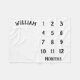 A simple and classic baby month milestone blanket shown with a white background and black text.
