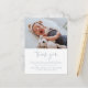 A Simple Simple Baby Photo Birth Stats Thank You Card featuring handwritten script thank you and minimal typography. Click the edit button to easily customize this thank you template with your own details and photograph.