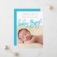 SIMPLE BABY PHOTO modern boy aqua script lettering Announcement