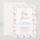 This modern, elegant, simple and fun gender neutral baby shower party invitation features dots and circles in blush pink, blue, beige pastel colours. Modern calligraphy script adds additional elegance. It's perfect for all seasons baby showers.