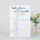 Unscramble the baby words! Simple baby shower or gender reveal word scramble party game (with answers below) featuring a fun, casual hand-lettered script. The classic design includes a modern handlettered quote typography overlay. For other colours or matching products, please visit the JustFharryn Zazzle store, or contact the designer, c/o Fharryn@yahoo.com All rights reserved. #bohochic #zazzlemade
