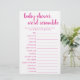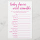 Unscramble the baby words! Simple baby shower or gender reveal word scramble party game (with answers below) featuring a fun, casual hand-lettered script. The classic design includes a modern handlettered quote typography overlay. For other colours or matching products, please visit the JustFharryn Zazzle store, or contact the designer, c/o Fharryn@yahoo.com All rights reserved. #bohochic #zazzlemade