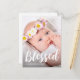 Simple baptism thank you postcard features pretty thank you white script in a modern brush font typography with one photo on the front, and a sweet editable custom thank you message with gold colour cross and return address on the back of this beautiful religious occasion thank you postcard.