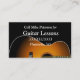 Guitar Lessons business cards, with black background and acoustic guitar on front.