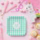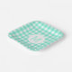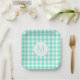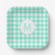 Simple Basic Mint Green Gingham Monogram Paper Plate