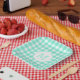 Dare to be different with this classic chequered gingham pattern in cheerful mint green with a white circular place to add your monogram in a matching mint green block font! Replace the initial with your own...choose your font or remove the monogram and add your own design. Perfect for weddings, anniversaries, reunions and luncheons.
