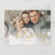 Simple Be Merry Heart Cute Script Gold photo Holiday Postcard