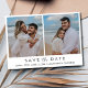 Two photo wedding save the date, perfect for your California beach wedding (or any other coastal location). Customise with two of your favourite engagement photos and your wedding details.