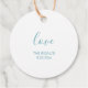 These unique favour tags feature the bride and groom name's in a modern hand letter script font on a solid turquoise blue colour. The card reverses to a solid white background complimentary colour personalisation. Use them for bridesmaid proposal gifts, hotel guest thank yous and wedding or party favours. To see matching items by Victoria Grigaliunas visit DoTellABelle on Zazzle at www.zazzle.com/dotellabelle