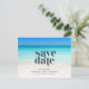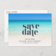 Save the date wedding postcards for your beach destination wedding in a simple beach design with blue ink. Add you wedding details to the front and backside of the postcard - mail to friends and family asking them to reserve your wedding date.