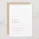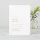 This beautifully elegant yet simple and minimal wedding invitation is printed with a navy blue font. The invitation has teamed two traditional serif fonts, creating an elegant and modern look. Easily edit the template to your bride and groom names and wedding details. Simple Beige White Wedding Invitation. The colour is hex #D6C1A6.