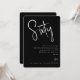 60th Birthdday party invitation. Black and white text. Simple. Text only. Rounded.