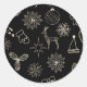 Simple Black and Gold Cute Christmas Pattern Classic Round Sticker