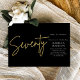 Simple Black and Gold Glitter 70th Birthday Invitation features a contemporary, understated design with a sleek faux gold foil "Seventy" in handwritten script. Against a black background, it exudes a sense of modern minimalism and elegance. This invitation is the perfect choice for both men and women celebrating this significant adult milestone, offering a great surprise for your 70th birthday party with all your essential party details elegantly presented.