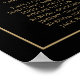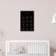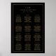 Simple wedding seating chart poster featuring a modern yet elegant design with your two letter monogram, names and date with the chart below, surrounded by a thin border. The template has three columns with twelve tables of eight guests as an example, but can be customised for your number of tables and guests. All text is in gold over a black background and may be changed to any colour you wish by clicking the "customise" button. A chic and stylish wedding seating chart design that is great for a minimalist couple.