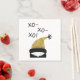 A simple modern black and gold faux glitter shy little dude dressed warm enough for a Canadian winter in a gold hat with a black pompom and black scarf with retro black font giving love xoxoxo.