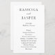 Elegant wedding program featuring a simple and minimal design. A classic layout with your names in large lettering for a modern twist to this traditional style. This black and white design may be modified to any colour you choose in the design editing tool. A wedding program that is perfect for a formal wedding.