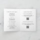 Elegant all in one folded wedding invitation featuring a simple and minimal black and white design. A classic layout with your names in large lettering for a modern twist to this traditional style invitation. The inside right panel has two QR Codes. Simply add your URL to the template and a QR Code will be generated. If you prefer, you may remove the QR Codes in the design editing tool. This wedding invitation is perfect for a formal wedding.