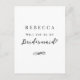 This Bridal Party Proposal Postcard offers a simple and elegant way to ask, "Will you be my bridesmaid?" A minimalist typography design that is fully customisable. Simple black and white colour scheme