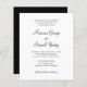 Simple budget wedding invitation with a minimal design in black and white with your names in an elegant script font. The fonts and back may be changed to any colour you wish by clicking the customise button. A basic and plain design that still comes across as chic, this modern wedding invitation is great for a couple with a minimalist style. These cheap wedding invitations are printed on sheets of paper for a budget friendly option.