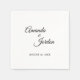 This simple black and white calligraphy cocktail napkin brings an elegant luxury but modern feel to both a minimalist and more traditional or formal wedding reception or event. The casual calligraphy allows for an antique feel, while the classy neutral design can be combined with any unique aspects of your celebration.