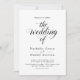 This elegant black-and-white wedding invitation is perfect for a modern wedding. The simple design features elegant black calligraphy on a clean white background. The invitation card includes the wedding details on the back instead of paying for a separate enclosure card.