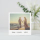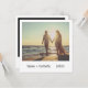 Unique and fun wedding invitations that mimick the look of a retro instant photo. The front has your names and date in a handwriting font and the back has your event details. The picture has a filter over it to give it an aged look (the filter can be changed or removed by clicking the customise button). This cool and modern design is great for the minimalist couple with a casual wedding.