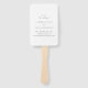 Modern wedding program hand fan featuring a simple design with classic serif and elegant script fonts.