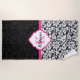 Simple Black And White Damask Pink Stripe Beach Towel