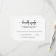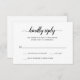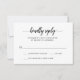 Simple black and white wedding RSVP card with the words, "kindly reply" in an elegant script with swashes. The template has a place for you to indicate the number of seats you have reserved for your guests. This modern and minimalist RSVP card coordinates with any style of wedding invitation suite.