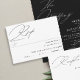 Wedding rsvp card with beautiful hand-written calligraphy in black and white to match our "Vivian Collection".. Personalise by using the fields provided or use the "Edit with design tool" function to adjust fonts, sizes and, spacing. If you need any help or additional colours please contact me (Maria) by using the contact button below
