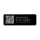 Black and white minimalist return address label with customisable QR code - perfect for directing family and friends to your wedding website. Personalise text and QR Code. Easy to Customise - Simply Press 'Personalise It' to Add Your Website Address. Make a lasting impression with this modern and practical addition to your wedding stationery ensemble.