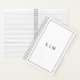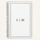 Simple business notebook featuring a modern yet elegant design with your two letter monogram surrounded by a border in classic black and white. The backside has your contact information. This personalised notebook in a minimalist style is great for any type of business.