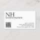 Modern QR Code business cards featuring a simple and minimal black and white design with your monogram in a bold font along with your name in the upper left corner. Your contact info is in the lower right corner.