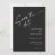 These 5" x 7" save the date cards feature a minimalist design in white letters on a black background with placeholders for the engaged couple names, wedding date, and venue information. The back has a spot to insert your favourite photo with the couple names and wedding date.
