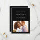 With elegant but simple modern typography, this one-photo save the date is the perfect way to announce your engagement and upcoming wedding. The classic black and white colour works with every style of wedding from formal to casual. The back features a simple stripe. The colour can be changed by clicking "customise further."