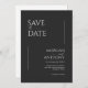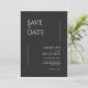 These 5" x 7" save the date cards feature a minimalist design in white letters on a black background with placeholders for the engaged couple names, wedding date, and venue information. The back has a spot to insert your favourite photo with the couple names and wedding date.