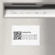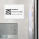 You can enter your website URL to show the correct QR code. Four lines of black text are next to the QR code. The top line is in a bold font. The other three lines are not bold. All text can be edited or deleted to create your custom message.