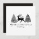 Simple Black and White Reindeer Evergreen Trees Holiday Card