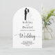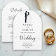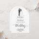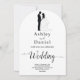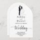 This elegant black-and-white arch wedding invitation is perfect for a modern wedding. The simple design features elegant black calligraphy and a bride and groom illustration on a clean white background. The invitation card includes the wedding details on the back instead of paying for a separate enclosure card.