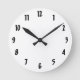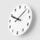 This is a clean and elegant wall clock, white background with black numbers of a simple style. The perfect clock for people who like the 'uncluttered look' and a clock that shows the time clearly.
