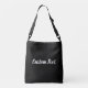This black bag has a line of display text in a white script. The text can be edited or deleted to show your custom message.