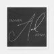 Minimalist Black and White Script Typography Wedding Napkins - Classic Elegance in a Dark Aesthetic. Elevate your wedding announcement with our modern black-and-white script typography napkins, a timeless choice for your special day. These wedding napkins seamlessly combine classic and elegant design elements with a dark aesthetic, creating a striking contrast that sets a formal and sophisticated tone. The simplicity of the black-and-white colour scheme and the elegance of the white typography make these wedding napkins a perfect choice for couples seeking a simple yet impactful statement. Choose these napkins to let your love shine in a classic and modern fusion