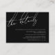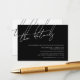 Minimalist Black and White Script Typography Wedding Details Cards - Classic Elegance in a Dark Aesthetic. Elevate your wedding announcement with our modern black-and-white script typography details cards, a timeless choice for your special day. This invitation seamlessly combines classic and elegant design elements with a dark aesthetic, creating a striking contrast that sets a formal and sophisticated tone. The simplicity of the black-and-white colour scheme and the elegance of the white typography make these wedding details cards a perfect choice for couples seeking a simple yet impactful statement. Choose these details cards to let your love shine in a classic and modern fusion