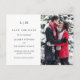 Simple photo save the date postcard featuring a modern yet elegant design with your two letter monogram and your wedding details in black over a white background. To the right is your favourite vertical photo. The fonts may be changed to any colours you wish. Add your return address and personal message to the back. A chic and stylish design that is great for a minimalist couple.