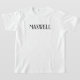This minimalist black letter family name on a child’s t-shirt has a stylised typography that gives it interest. It's bold and because it's in all caps, it's easy to read which comes in handy when one is a child. It's also helps to have your last name on a t-shirt, so you don't lose it. Don't ask.